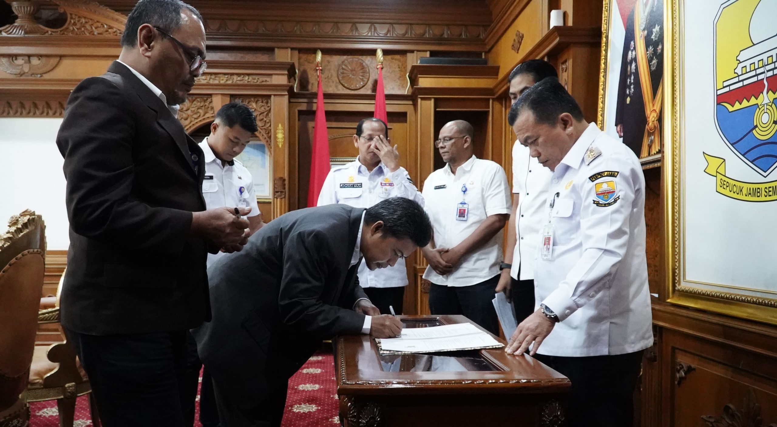Siginjai99 Channel, Jambi : Gubernur Jambi, Al Haris, secara resmi memimpin Rapat Umum Pemegang Saham (RUPS) PT. Jambi Indoguna Internasional (PT JII), yang dilaksanakan dalam rangka pengesahan hasil lelang jabatan untuk posisi Komisaris dan Direktur. Dalam kesempatan tersebut, dua nama disahkan sebagai pimpinan baru BUMD strategis milik Pemerintah Provinsi Jambi, yakni Anhar, sebagai Komisaris, dan Muhammad Ganda Wijaya, sebagai Direktur. Dilaksanakan di Ruang Rapat Kerja Gubernur, Kantor Gubernur Jambi, Rabu (06/08/2025) siang.