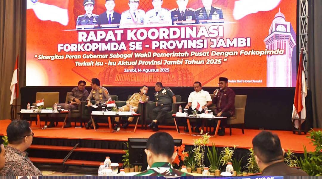 Rakor yang diikuti Kepala Daerah serta Unsur Forkopimda Se-Provinsi Jambi ini mengangkat tema “Sinergitas Peran Gubernur Sebagai Wakil Pemerintah Pusat Dengan Forkopimda Terkait Isu-Isu Aktual Provinsi Jambi Tahun 2025.