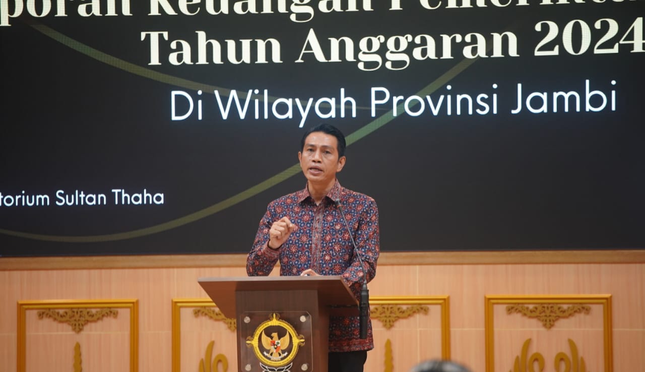 Kepala Perwakilan BPK RI Provinsi Jambi Muhamad Toha Arafat, menyerahkan secara langsung Laporan Hasil Pemeriksaan (LHP) atas Laporan Keuangan Pemerintah Daerah (LKPD) Tahun Anggaran 2024 Pemerintah Kabupaten Batang Hari kepada Bupati Batang Hari Mhd Fadhil Arief, di Auditorium BPK RI Perwakilan Provinsi Jambi, Kota Jambi.