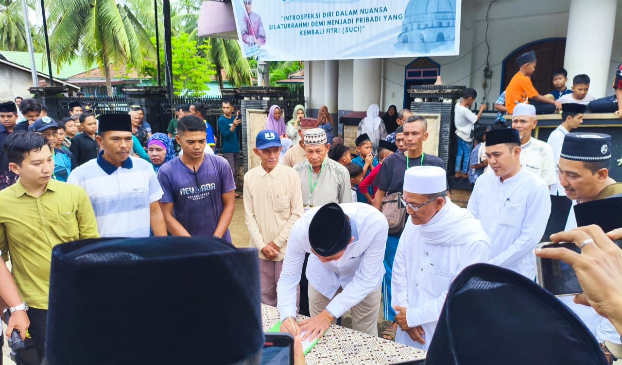 Siginjai99 Channel, Batang Hari : Bupati Batang Hari, Mhd. Fadhil Arief, menyerahkan Sapi Qurban dari Presiden RI Prabowo Subianto, kepada masyarakat Desa Pasar Terusan, Jum’at (06/06/2025), di Masjid Jami’ Baiturrahim, Desa Pasar Terusan, Kabupaten Batang Hari.