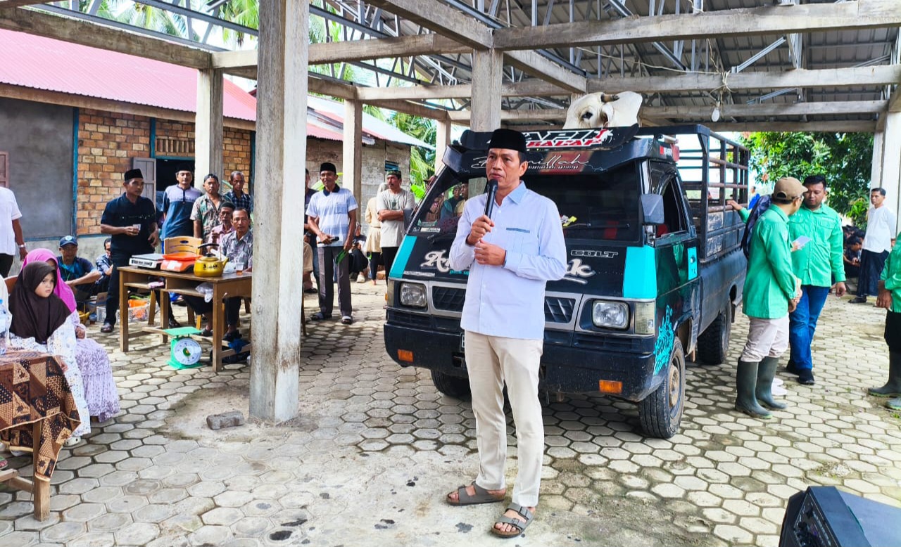 Dalam sambutannya, Fadhil Arief mengatakan bahwa Sapi Qurban dari Presiden RI untuk Desa Pasar Terusan berdasarkan penilaian yang diserahkan kriteria penilaiannya kepada Pemkab Batang Hari.