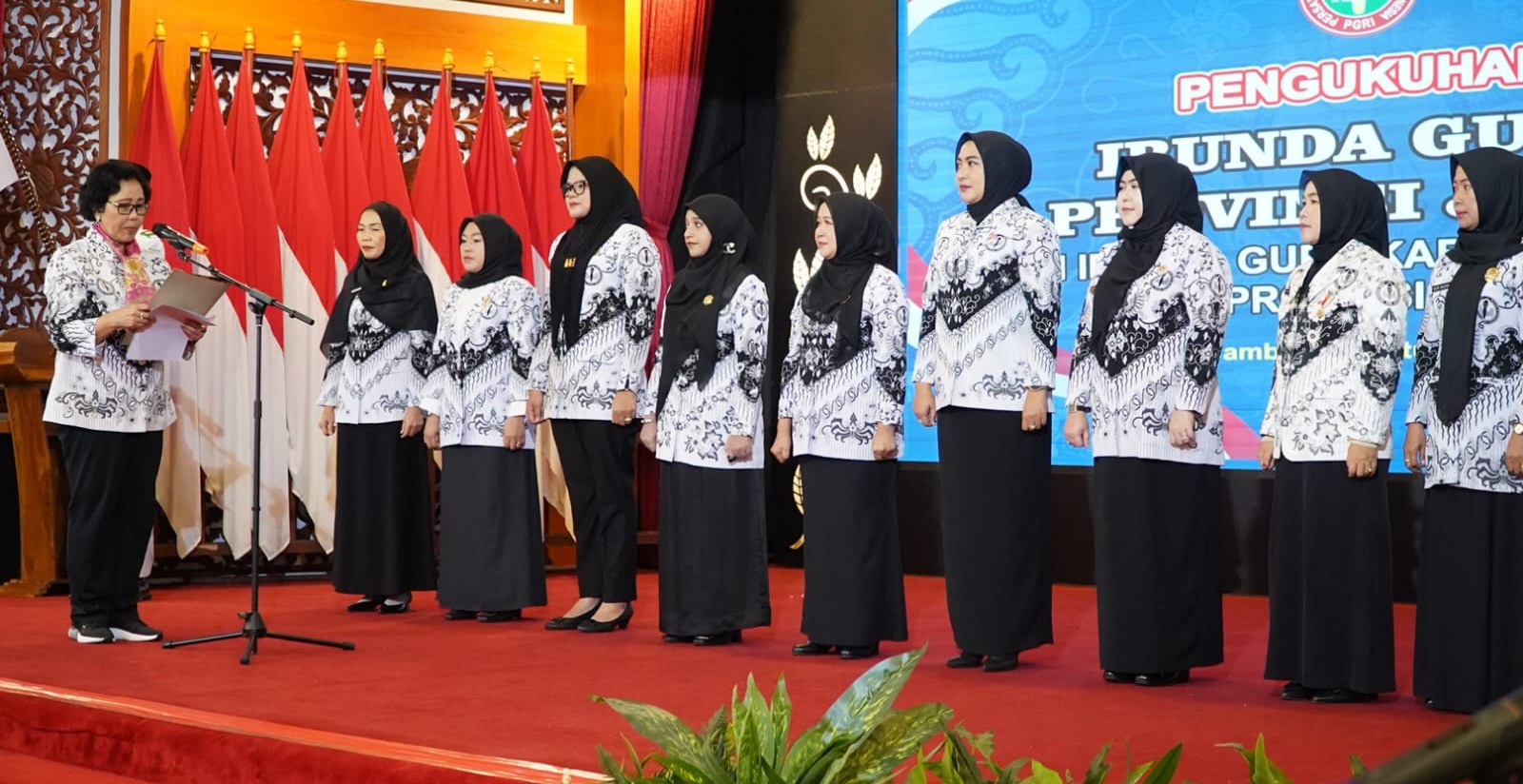Pengukuhan ini dilaksanakan oleh Ketua Umum Pengurus Besar Persatuan Guru Republik Indonesia (PB PGRI), Unifah Rasyidi, bertempat di Auditorium Rumah Dinas Gubernur Jambi, Kamis pagi (07/08/2025).