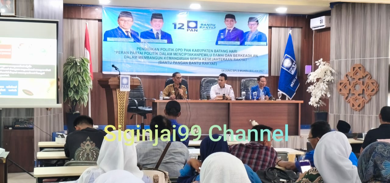 Siginjai99 Channel, Batang Hari : Dewan Pengurus Daerah (DPD) PAN Kabupaten Batang Hari, menggelar Pertandingan Pendidikan Politik yang bertemakan ” Peran Partai Politik Dalam Menciptakan Pemilu Damai Dan Berkeadilan Dalam Membangun Kemandirian Serta Kesejahteraan Rakyat” (Bantu Pangan Bantu Rakyat), Senin (03/11/2025), di Gedung BPLS, Muara Bulian.
