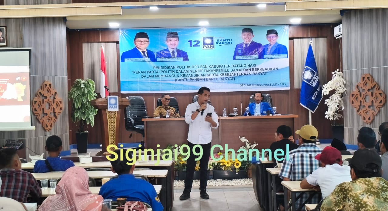 Siginjai99 Channel, Batang Hari : Dewan Pengurus Daerah (DPD) PAN Kabupaten Batang Hari, menggelar Pertandingan Pendidikan Politik yang bertemakan ” Peran Partai Politik Dalam Menciptakan Pemilu Damai Dan Berkeadilan Dalam Membangun Kemandirian Serta Kesejahteraan Rakyat” (Bantu Pangan Bantu Rakyat), Senin (03/11/2025), di Gedung BPLS, Muara Bulian.