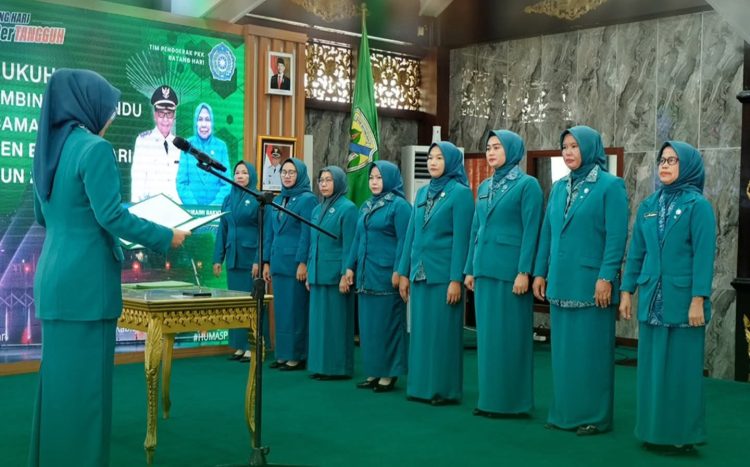 Zulva mengucapkan selamat atas dikukuhkannya para Ketua Tim Pembina Posyandu se-Kecamatan Kabupaten Batang Hari.